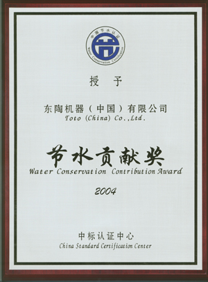 2004年8月,TOTO公司喜获中标认证中心颁发的“节水贡献奖”,此奖项的评选是按照生产经营情况,认证情况等多个因素,经严审评选出的具有权威性的奖项。TOTO在中国率先投放了6L节水座便器,并将独自开发的““智洁””、“G-...