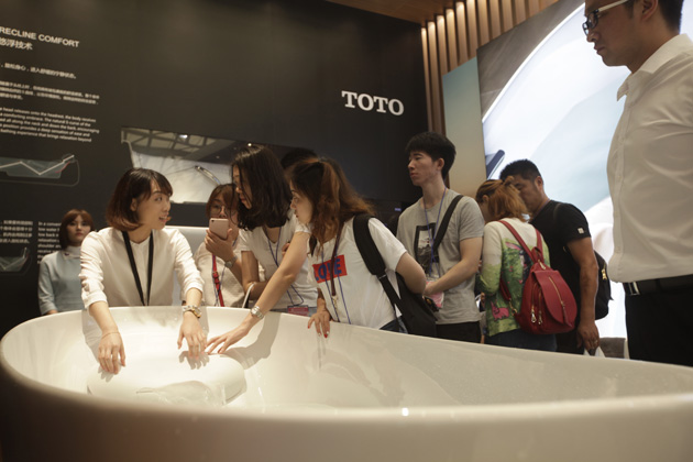 曾有一篇网红贴写道:男人下班后回家前喜欢在车里独处10分钟,因为那10分钟他属于自己。一二线城市的快节奏和高压力让很多人在别人的节奏里失去“自我”,自我放松与给他人空间尤为珍贵。“漂浮浴缸”便是TOTO最新卫浴科技的展现,采用全新的““纤浮””技术,“纤浮”借助水的浮力,让沐浴者感觉处于一种非常稳定的漂浮状态,仿若太空遨游,这时清空脑中一切杂念,如冥想一般。展会展出的新款浴缸,延续了“漂浮浴缸”的设计理念,采用““悠浮””,分析捕捉人体在水中的运动机制和活动状态,让人体以舒服的自然姿势,在水中入浴。