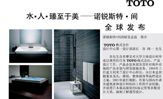TOTO创新于业界的概念性顶级卫浴套装—诺锐斯特•间近期在中国乃至全球同步发售,应发了整个行业的不小震动。