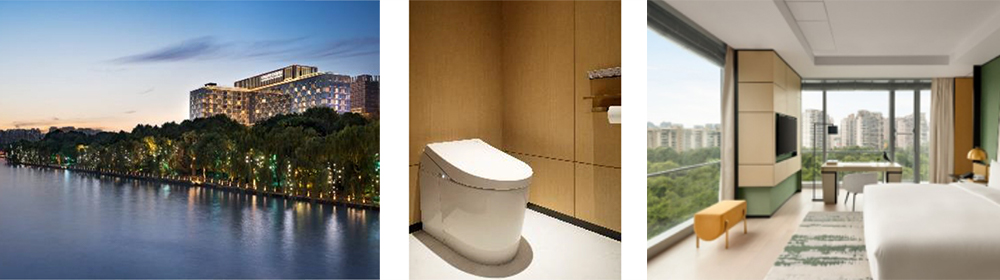 杭州的豪华酒店,座落在西湖附近的大运河旁,在其优雅设计的客房中设有卫洗丽产品。