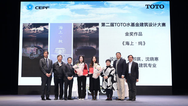 此外,演讲会前,还特别举行了一场媒体发布会以及TOTO水环境基金洗手间建筑设计大赛金奖颁奖仪式。此次大赛由中华环境保护基金会、东陶(中国)有限公司联合主办,主题为“绿色、智能、品质”,旨在征集一批富有创意的洗手间室内设计作品,推广一系列兼具环保与智能特色的洗手间装饰艺术品,提升公众水资源保护意识。东利惠女士与中华环境保护基金会理事徐光理事长共同为金奖获得者颁奖。