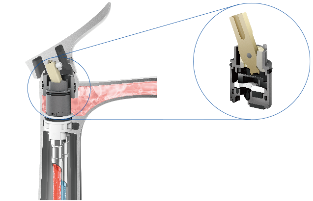 TOTO认为舒适不仅仅是环境舒适,持久易用也是舒适感的一部分。基于这一目的,TOTO为用户设置了独特的阀芯。本设计从根本上为简化操作提供了基础。