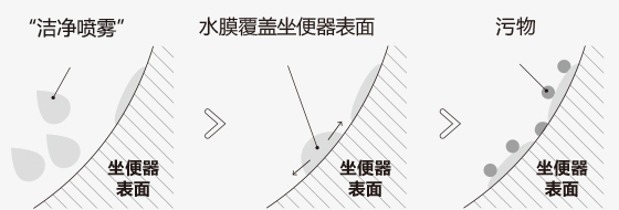 每次使用前,都将会在便器内壁上喷洒水雾。利用陶瓷的亲水性,使污物更易清洗干净。